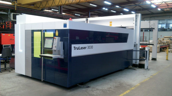 - 1 laser Fibre TRUMPF 3030 de 4000 W possédant un chargeur + déchargeur LIFMASTER de format 3000 × 1500 pouvant découper acier, inox, aluminium, laiton et cuivre